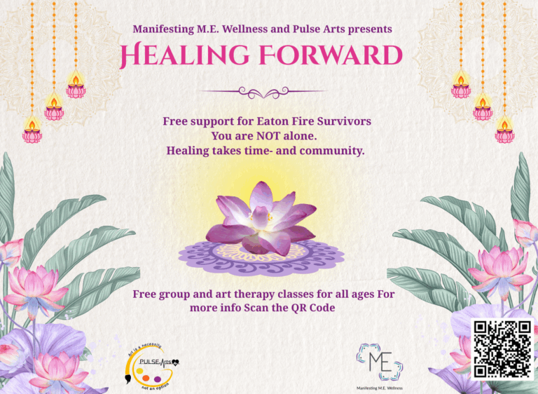 We’re so excited to share that the first Healing Forward group will be next month! Healing Forward is a new community program from Manifesting M.E. Wellness in partnership with Pulse Arts! This offering was created with love and care for those impacted by the Eaton Fire, providing free art therapy and healing circles to help you process, release, and reconnect.